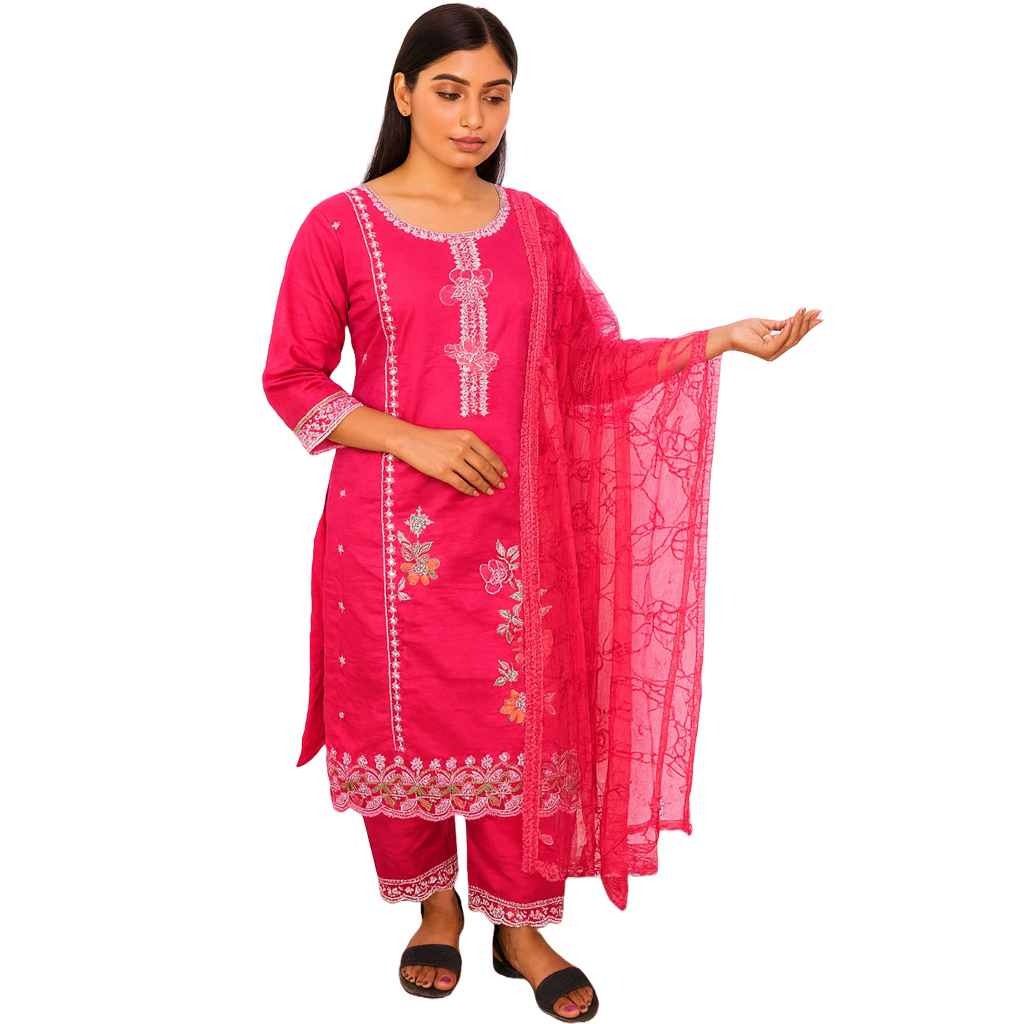 Style: Cotton blend / georgette embroidered suit set