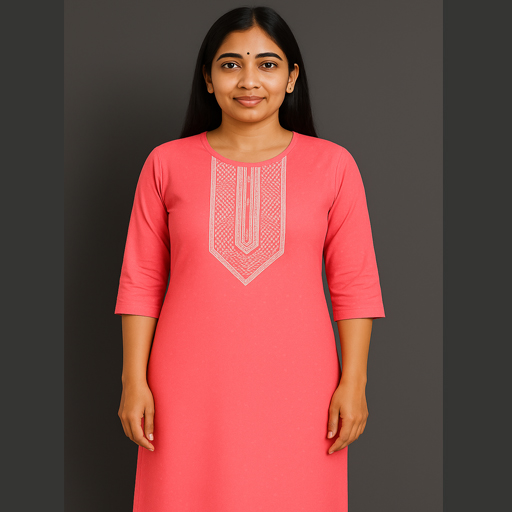Style: Simple straight kurti, 3/4 sleeves
